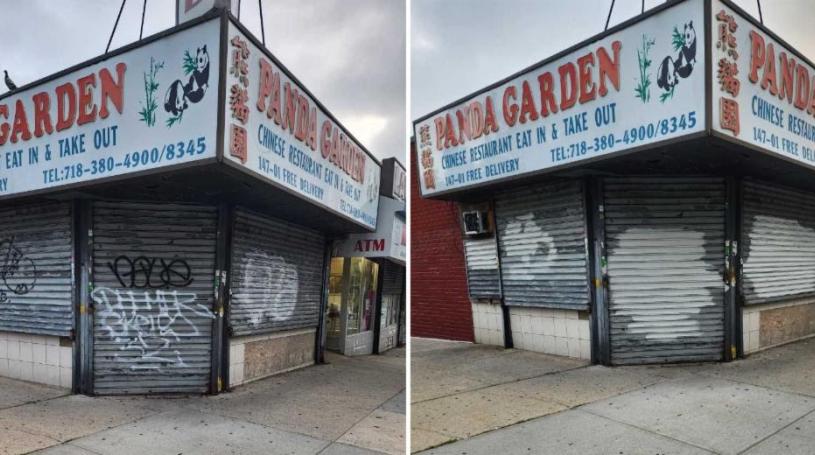 As part of his ongoing efforts to boost the quality of life in his district, Councilman James Gennaro collaborated with the Association of Community Employment Programs (ACE) for its first graffiti removal project at the Chinese restaurant Panda Garden, located at the intersection of Union Turnpike and 147th Street in Kew Gardens Hills on July 31.