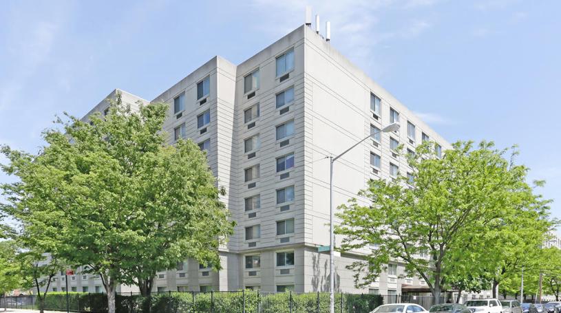 The Queenswood Apartments are comprised of two, eight-story buildings with a playground and private courtyard, controlled access gated entry, a 24-hour laundry facility, and on-site parking.