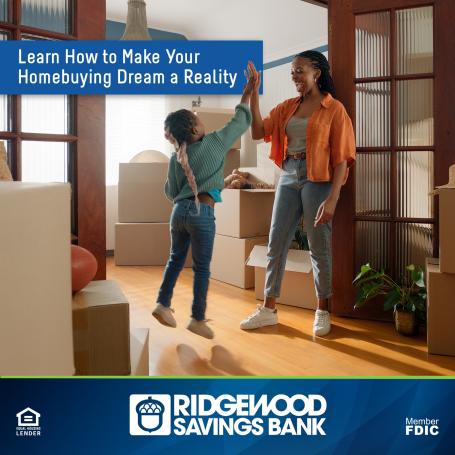 Take the first step toward achieving your dream of homeownership. Click the link https://www.ridgewoodbank.com/home/borrowing/affordable_mortgage to sign up for their FREE Virtual Homebuyers Seminar on Thursday, 10/23 and Thursday, 11/20 from 6pm- 8pm.