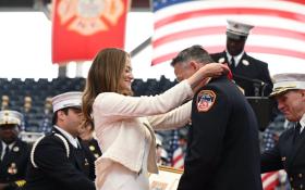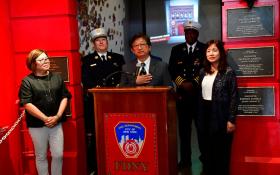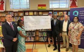Queens Borough President Donovan Richards, pictured in the light blue suit, has outlined how he allocated funding for Queens parks and the Queens Public Library system totaling nearly $17 million.